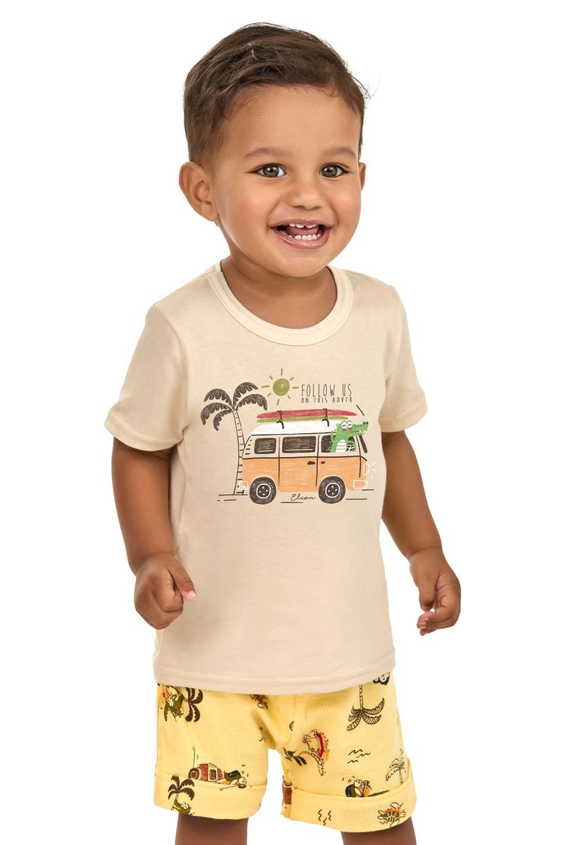 Conjunto Curto Bebê Menino Tropical Elian Bege REF: 201287-2057
