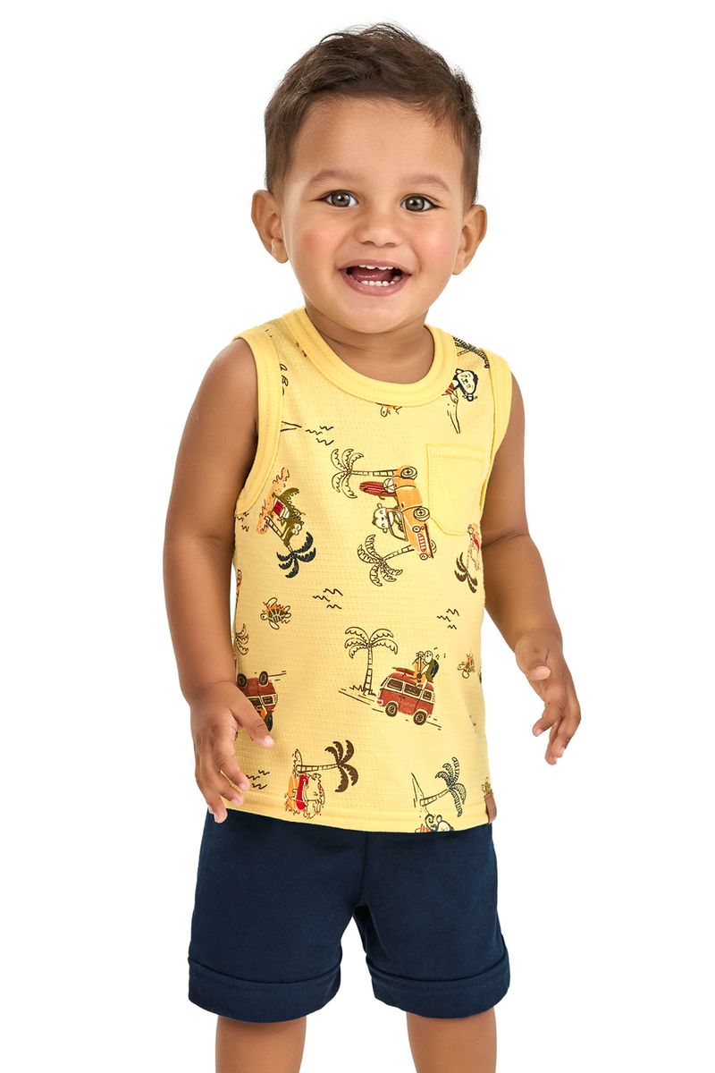 BabyMeninos BabyConjuntos Baby MeninosConjunto Bebê Menino Regata Tropical Elian Amarelo