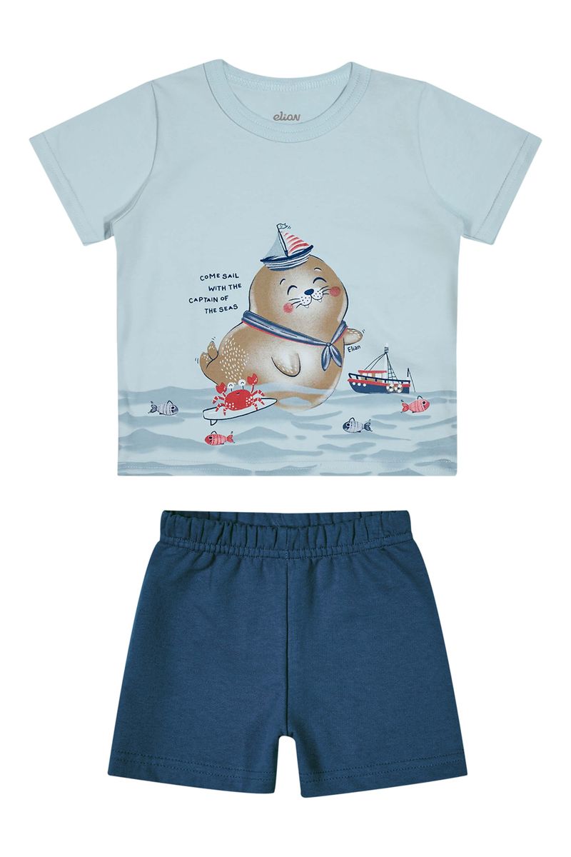 Conjunto Bebê Menino Camiseta e Bermuda Elian Azul REF: 201295-6112