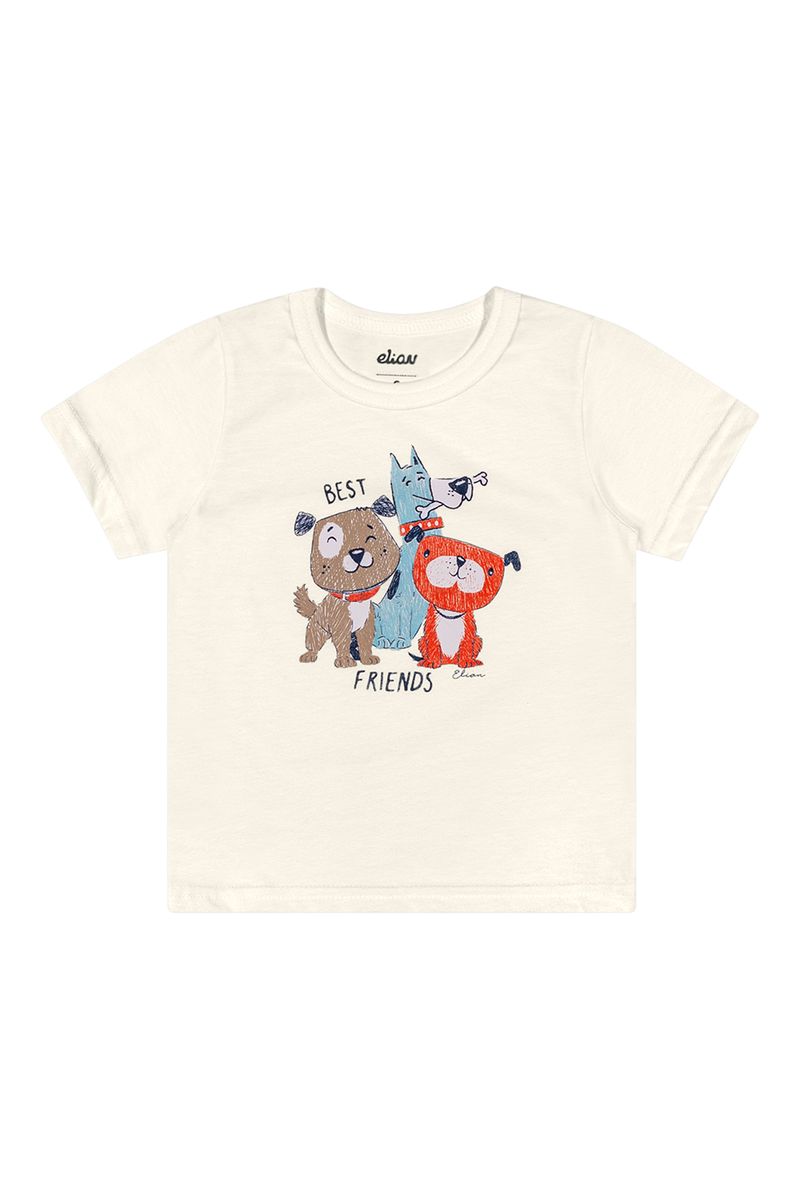 Camiseta Bebê Menino Manga Curta Cachorrinhos Elian Bege REF: 201302-2037