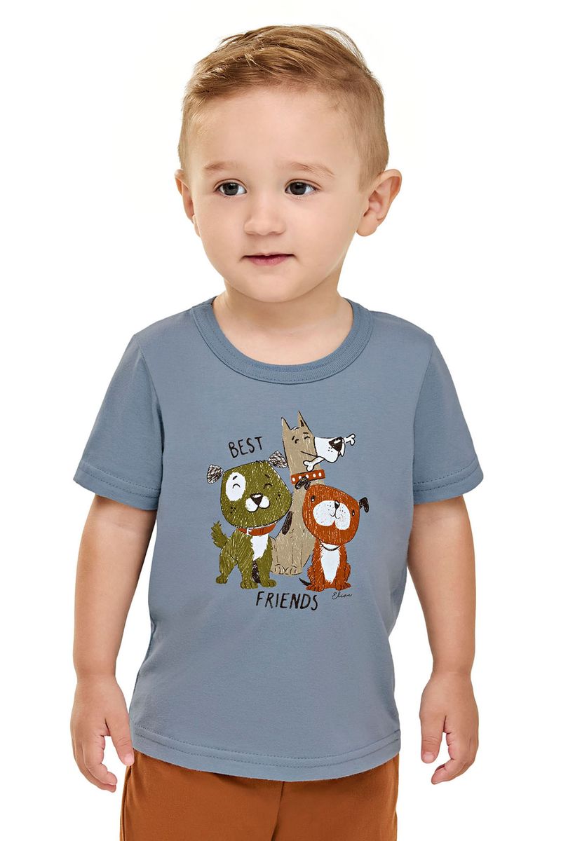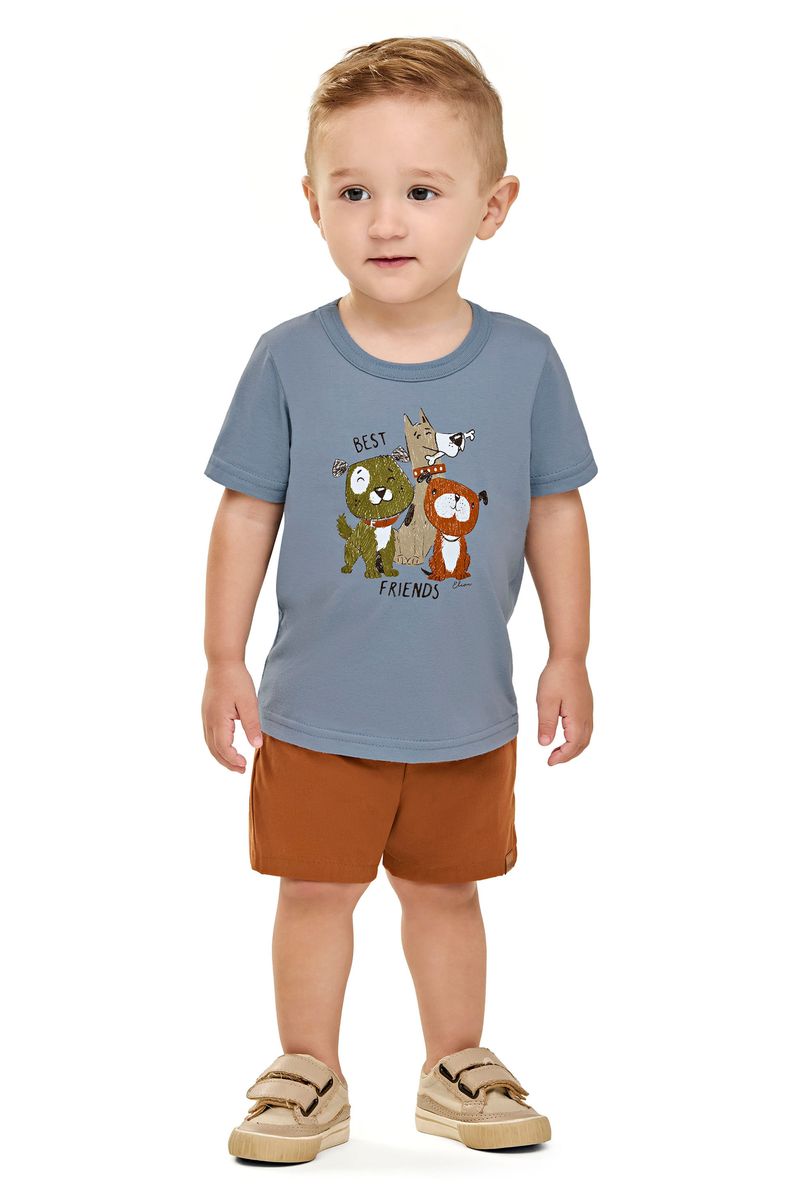 Camiseta Bebê Menino Manga Curta Cachorrinhos Elian Azul REF: 201302-6131
