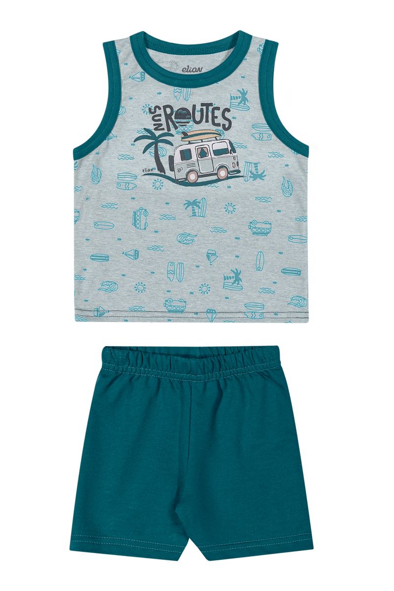 BabyMeninos BabyConjuntos Baby MeninosConjunto Bebê Menino Com Regata Surf e Bermuda Elian Verde