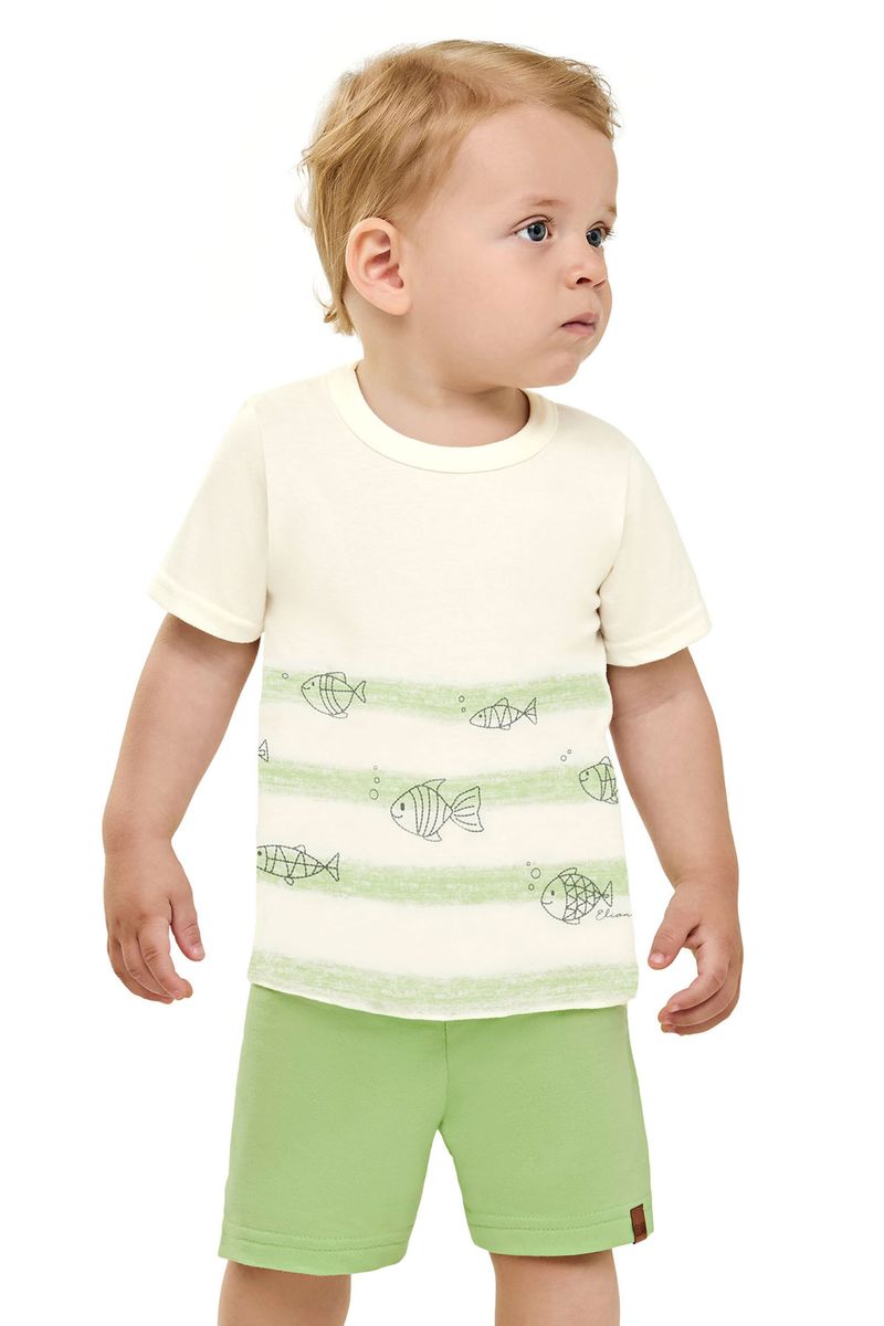 BabyMeninos BabyConjuntos Baby MeninosConjunto Bebê Menino Manga Curta Peixinhos Elian Bege