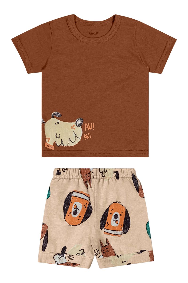 BabyMeninos BabyConjuntos Baby MeninosConjunto Bebê Menino Curto Cachorrinhos Elian Marrom