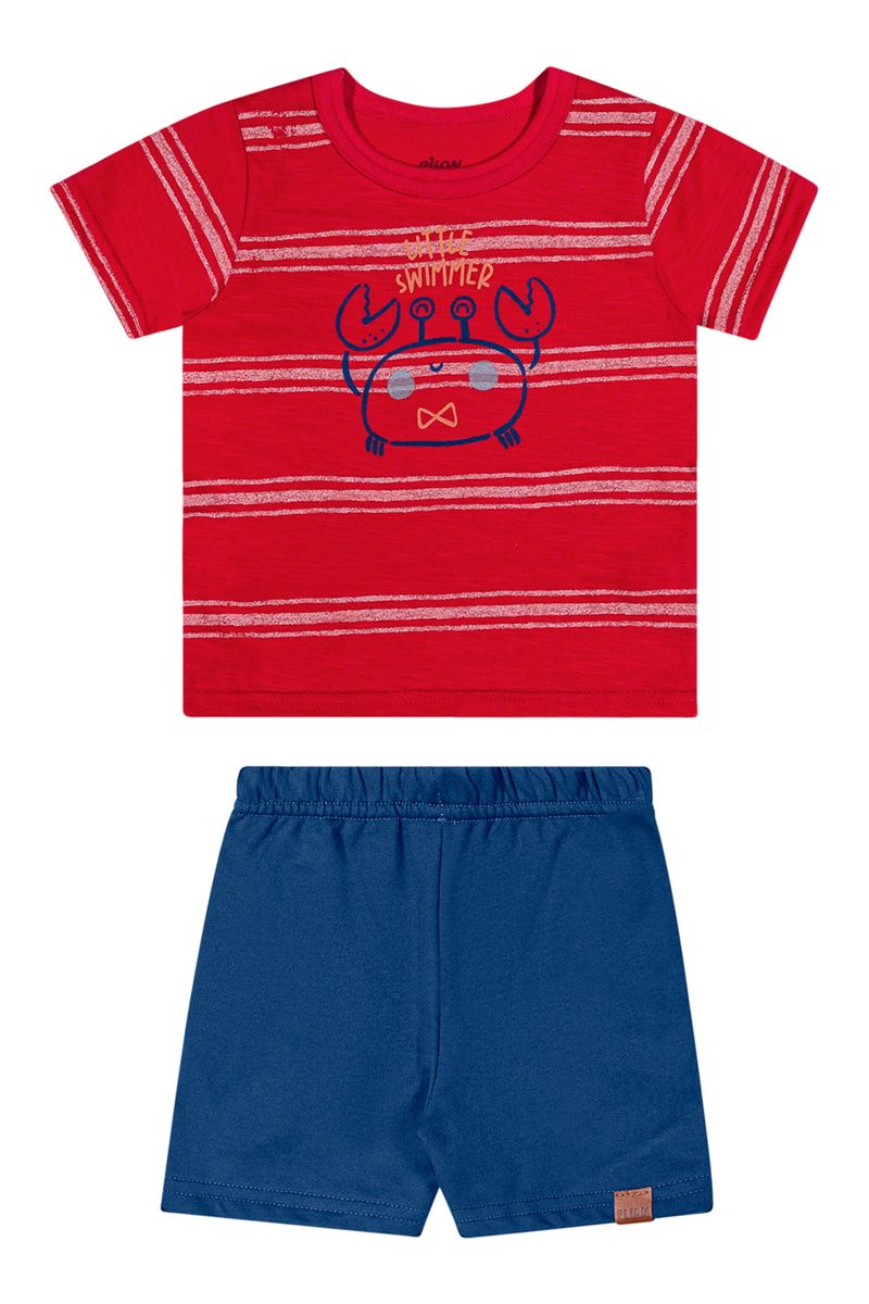 Conjunto Bebê Menino Listrado Caranguejo Elian Vermelho REF: 201312-4010