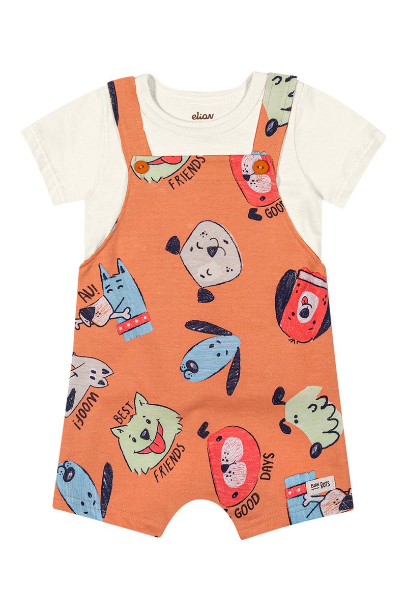 Conjunto Bebê Menino Com Jardineira Cachorrinhos Elian Laranja REF: 201315-2037