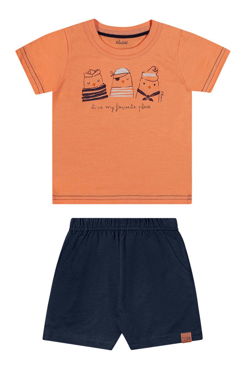 BabyMeninos BabyConjuntos Baby MeninosConjunto Bebê Menino Manga Curta Pombos Elian Laranja
