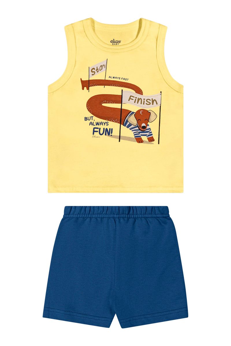 Conjunto Bebê Menino Com Regata e Bermuda Animais Elian Amarelo REF: 201322-3100