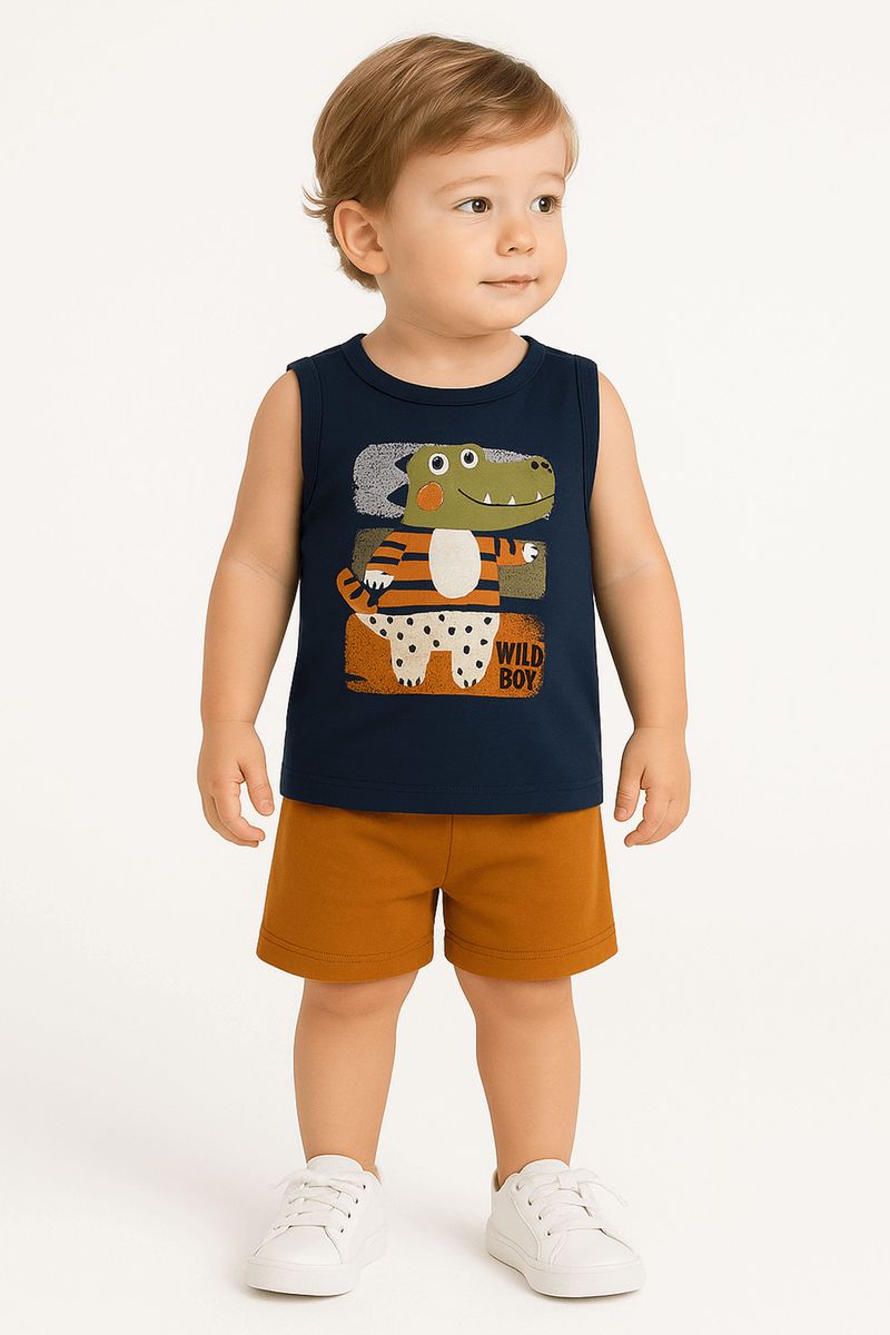 Conjunto Bebê Menino Com Regata e Bermuda Animais Elian Marinho REF: 201322-6751