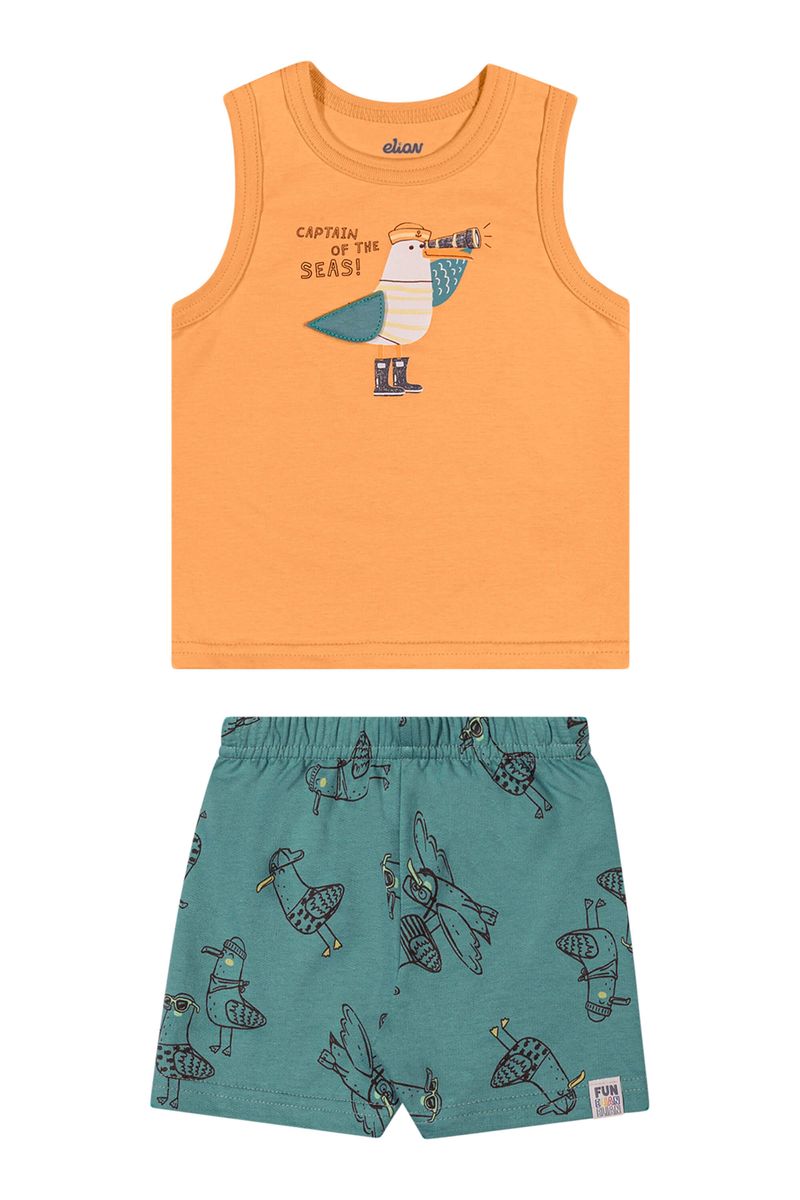 Conjunto Bebê Menino Estampa Gaivota Interativa Elian Laranja REF: 201325-3070
