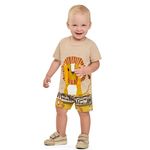• Conjunto composto por camiseta e bermuda • Feito em meia malha e malha flamê • Estampa interativa com temática de safári • Elástico no cós • Ideal para ocasiões divertidas em família