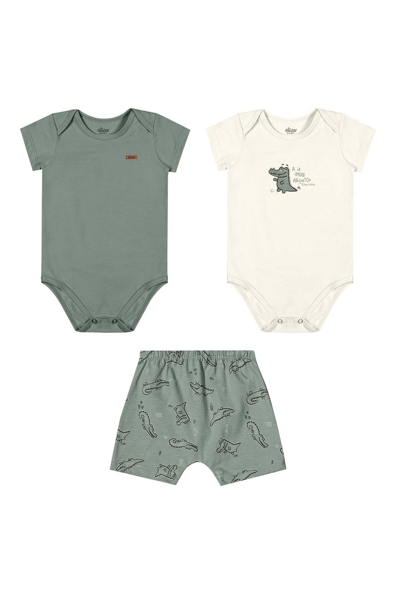 BabyMeninos BabyKit Bebê Menino Bodies e Short Cotton Elian Verde