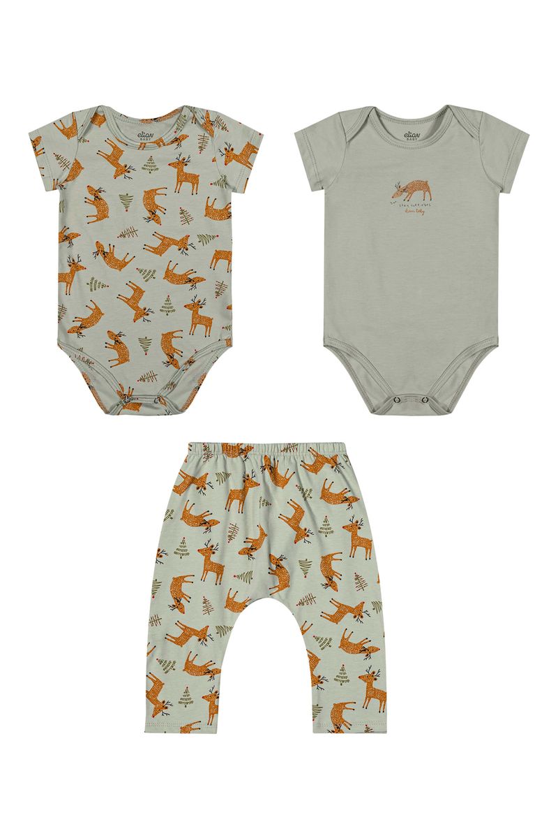 Kit Bebê Menino Bodies Bichinhos Elian Verde REF: 201348-5595