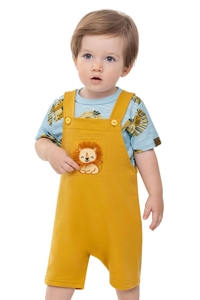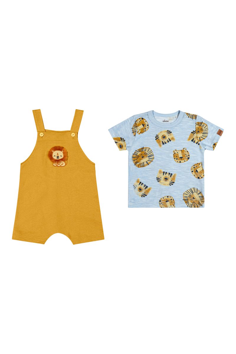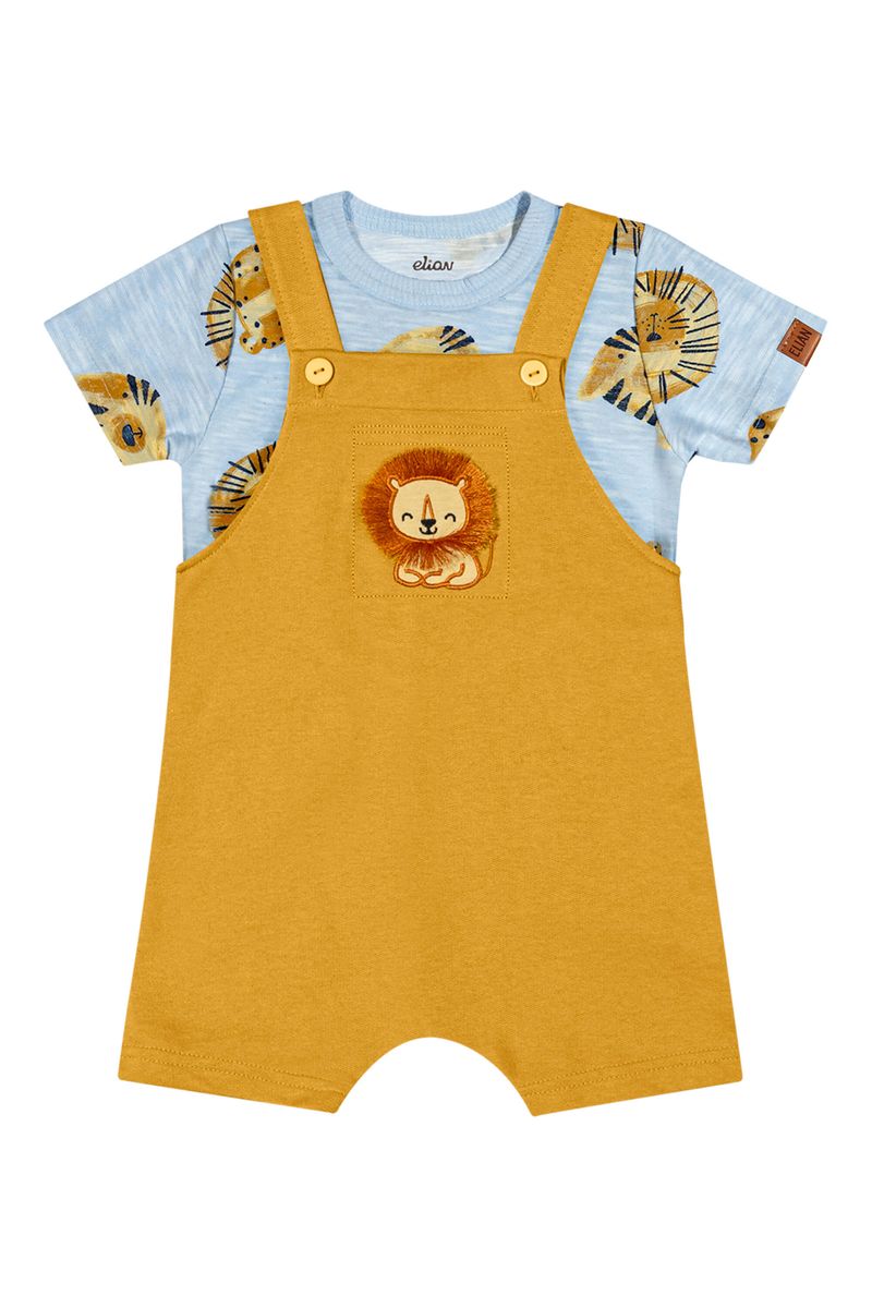• Conjunto composto por camiseta e jardineira • Feito em meia malha flamê e moletom sem felpa • Possui estampa com animais da selva • Camiseta com mangas curtas • Jardineira com alças com botões • Possui detalhe em bordado • Ideal para passeios e momentos de lazer