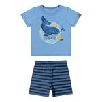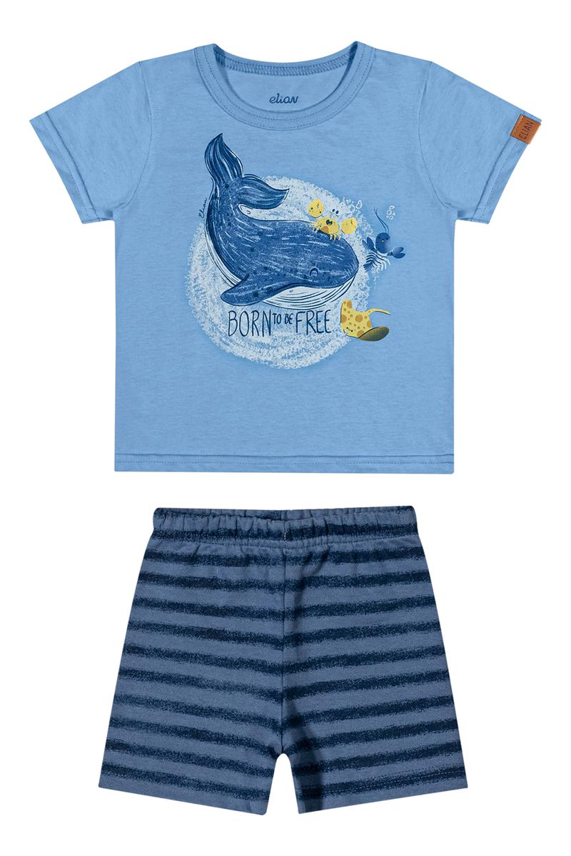 • Conjunto composto por camiseta e bermuda • Feito em meia malha e moletom sem felpa • Possui mangas curtas • Possui estampa com animais marinhos • Possui elástico no cós • Ideal para momentos de lazer e passeios