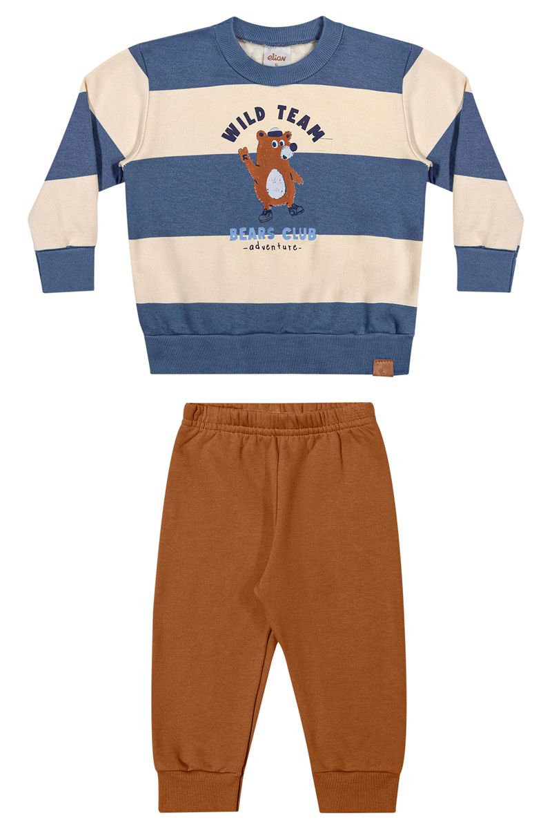 • Conjunto composto por blusão e calça • Feito em moletom felpado • Possui mangas longas • Estampa listrada e com urso • Elástico no cós • Ideal para passeios e momentos de lazer
