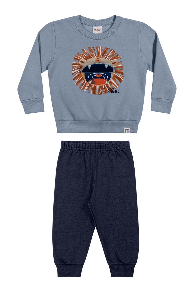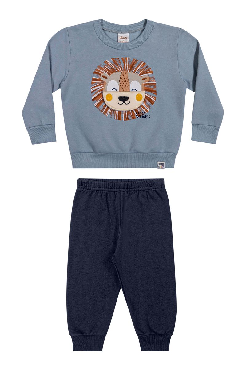 • Conjunto composto por blusão e calça • Feito em moletom felpado • Possui mangas longas • Estampa de leão interativa • Elástico no cós • Ideal para passeios e momentos especiais
