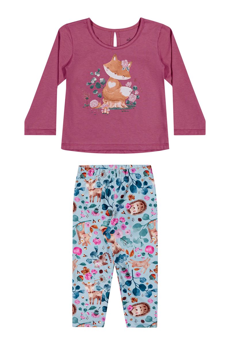 Conjunto Longo Bebê Menina Estampado Elian Roxo REF: 211546-4099