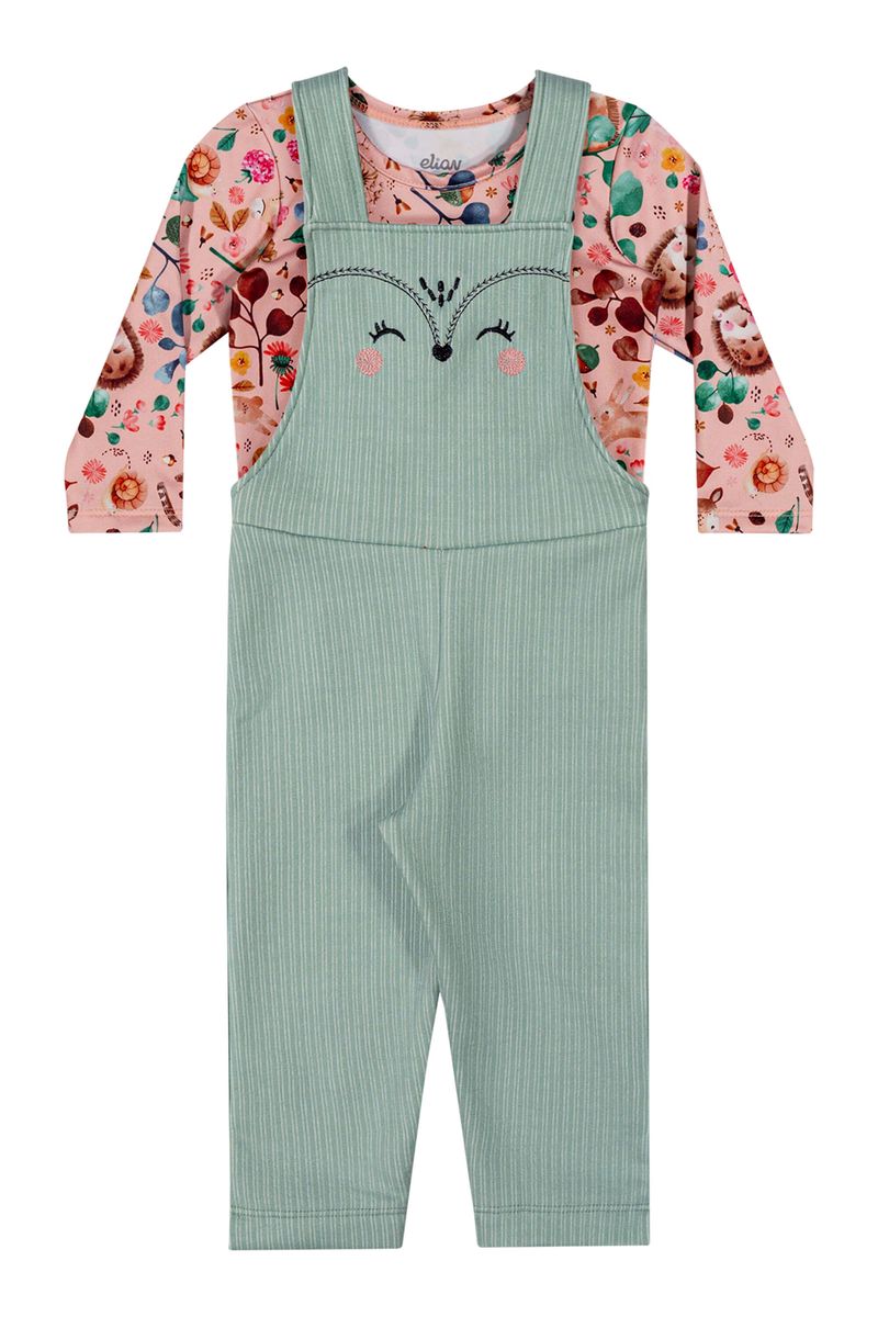 Conjunto Bebê Menina Jardineira Bordada Elian Rosa REF: 211550-4103