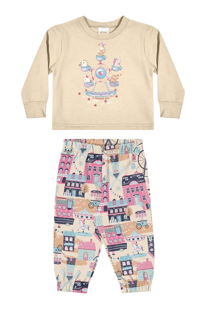 Conjunto Bebê Menina Moletom Elian Bege REF: 211569-2057