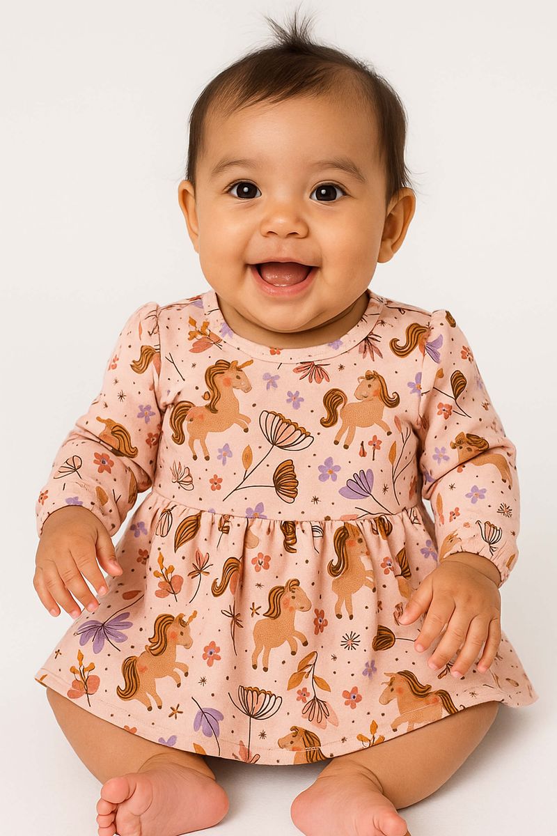 BabyMeninas BabyVestidos Baby MeninasVestido Bebê Menina Manga Longa Pôneis Elian Rosa