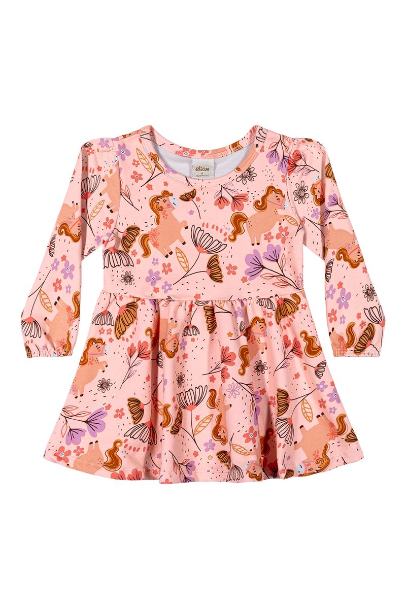 Vestido Bebê Menina Manga Longa Pôneis Elian Rosa REF: 211576-4954