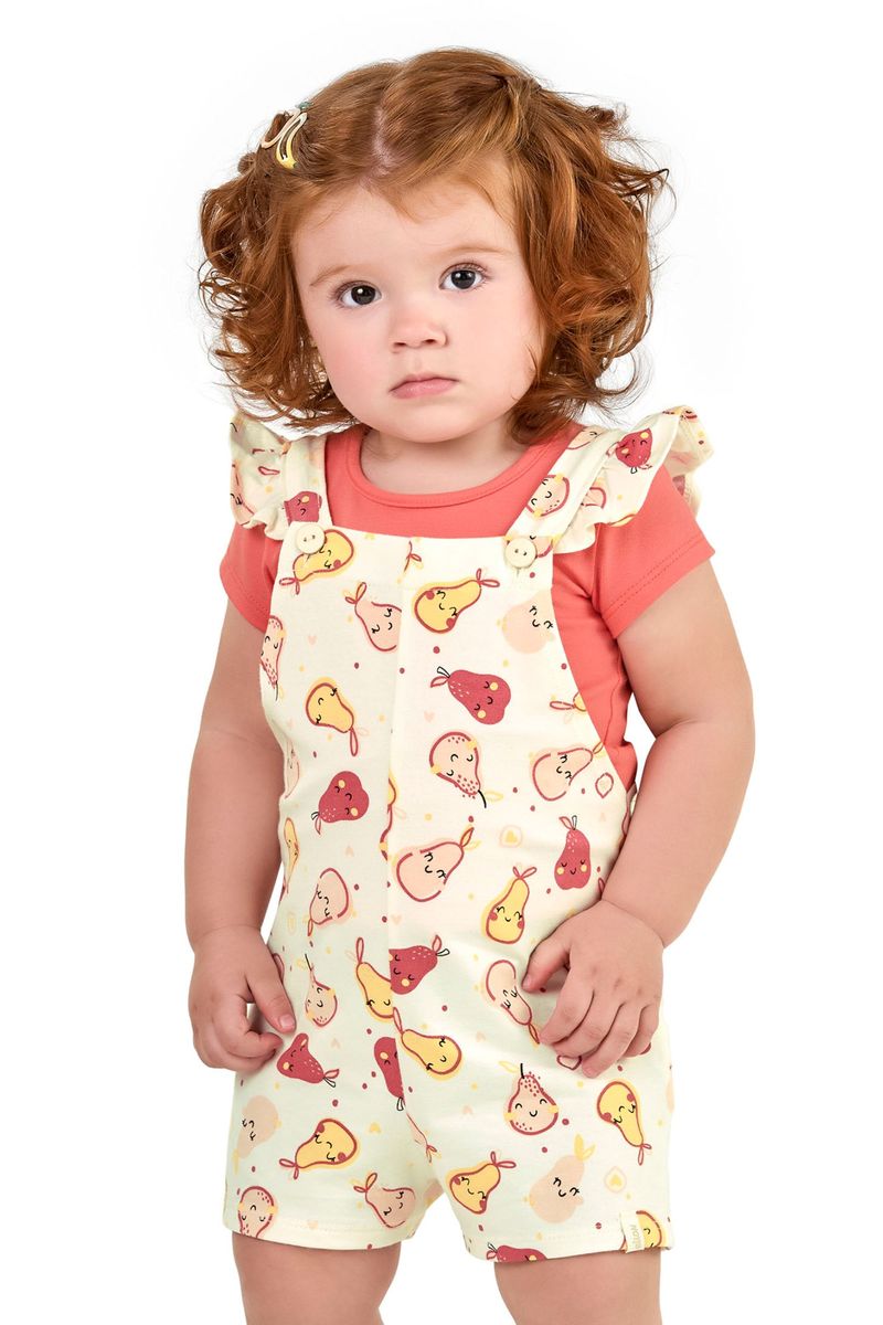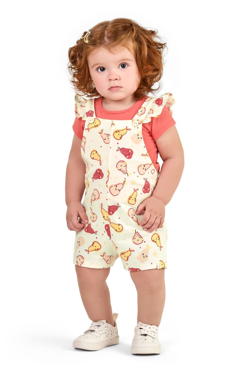Conjunto Bebê Menina Com Jardineira Frutinhas Elian Rosa REF: 211577-3054