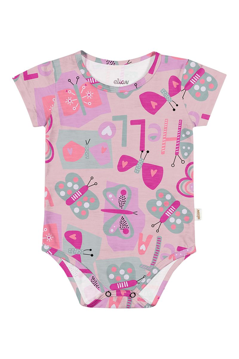 Body Bebê Menina Estampado Curto Elian Rosa REF: 211589-4098