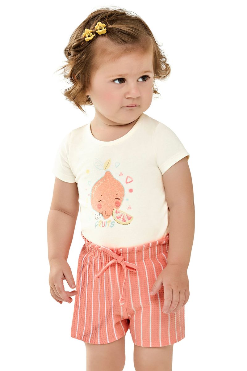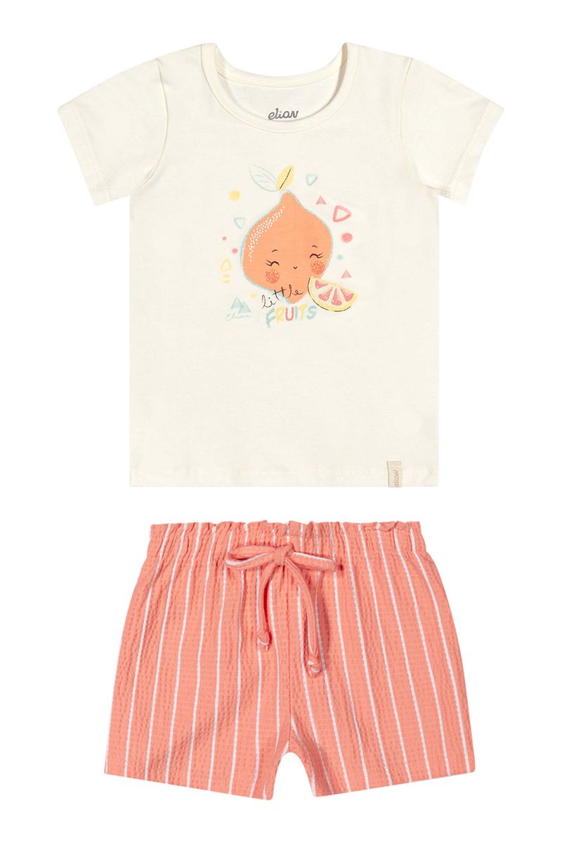 Conjunto Curto Bebê Menina Frutinhas Elian Bege REF: 211596-2037