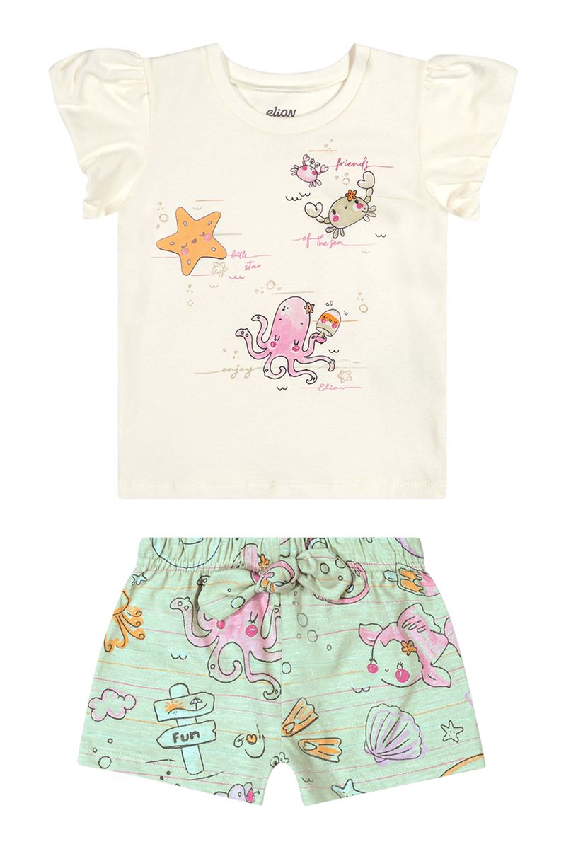 Conjunto Curto Bebê Menina Fundo do Mar Elian Bege REF: 211598-2037
