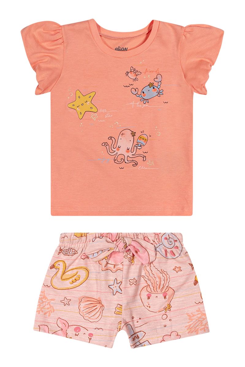Conjunto Curto Bebê Menina Fundo do Mar Elian Laranja REF: 211598-3470
