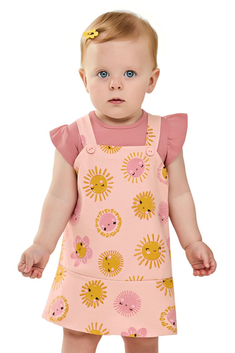 Conjunto Bebê Menina Vestido e Blusa Sol Elian Rosa REF: 211601-4118