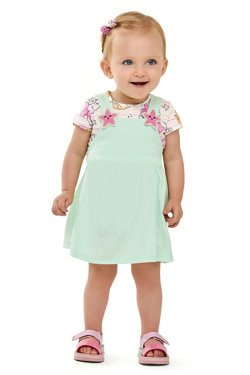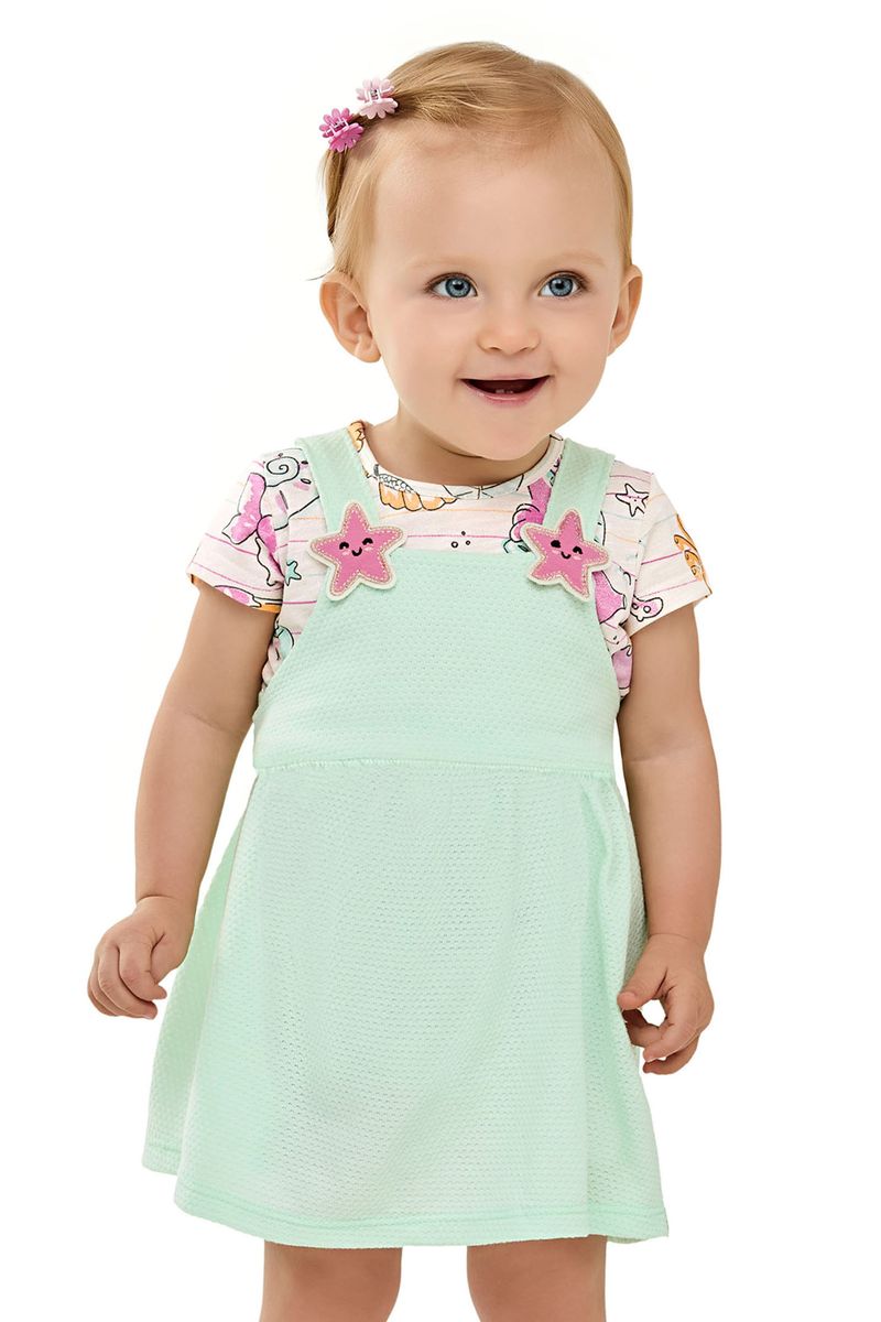 Conjunto Bebê Menina Vestido e Blusa Fundo do Mar Elian Verde REF: 211602-2037