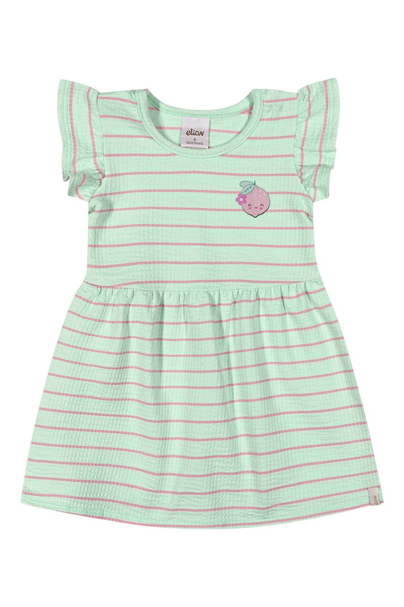 Vestido Bebê Menina Malha Canelada Listrada Elian Verde REF: 211603-5127