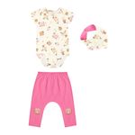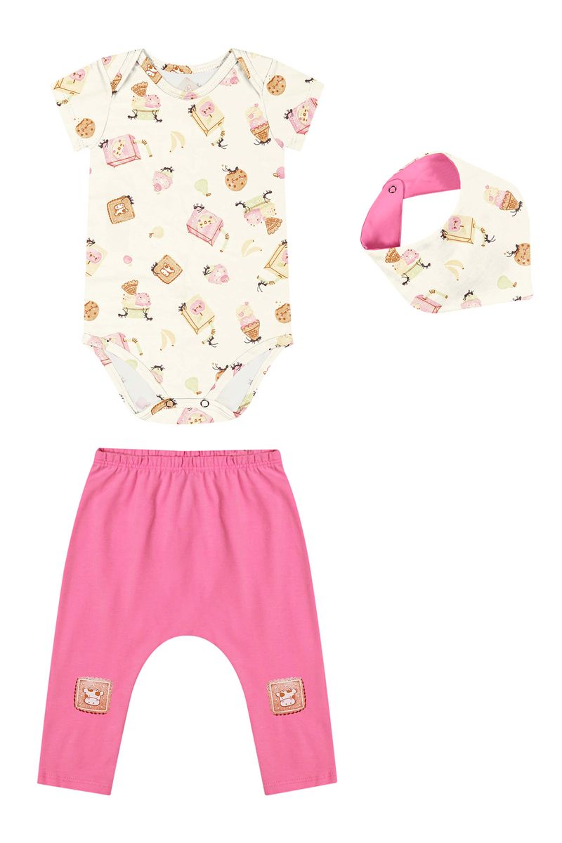 Kit Bebê Menina Estampado Com Babador Elian Bege REF: 211621-2037