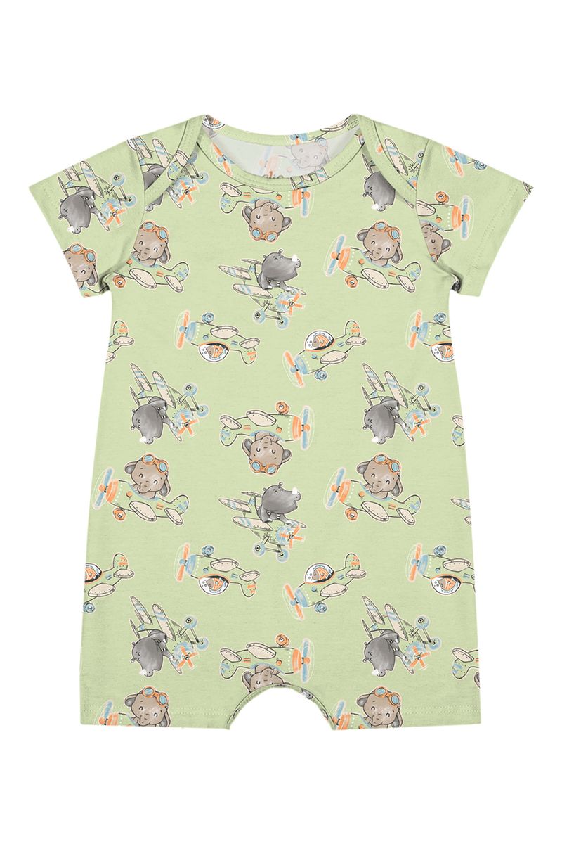 BabyMeninos BabyMacacões Baby MeninosMacaquinho Bebê Menino Cotton Estampado Elian Verde