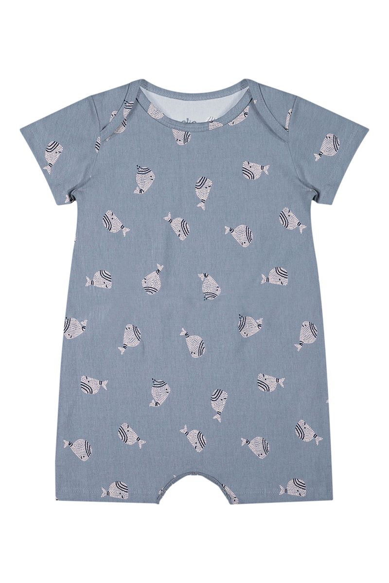 BabyMeninos BabyMacacões Baby MeninosMacaquinho Bebê Menino Cotton Estampado Elian Azul
