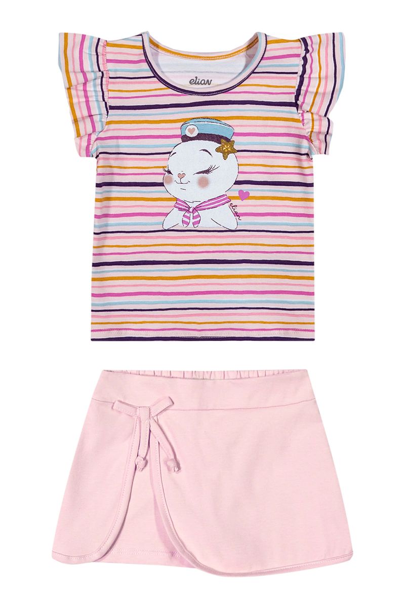Conjunto Bebê Menina Cotton Listrado Elian Rosa REF: 211630-4169