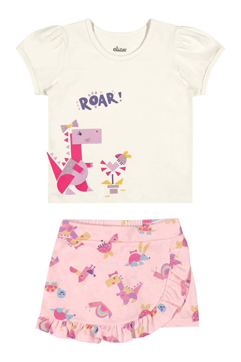 Conjunto Bebê Menina Dino Curto Elian Bege REF: 211631-2037