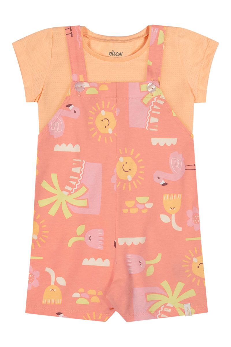 Conjunto Bebê Menina Tropical Com Jardineira Elian Laranja REF: 211632-3094