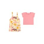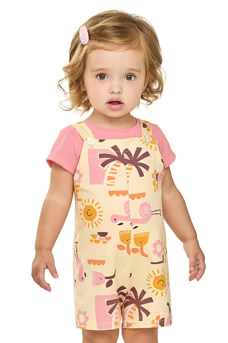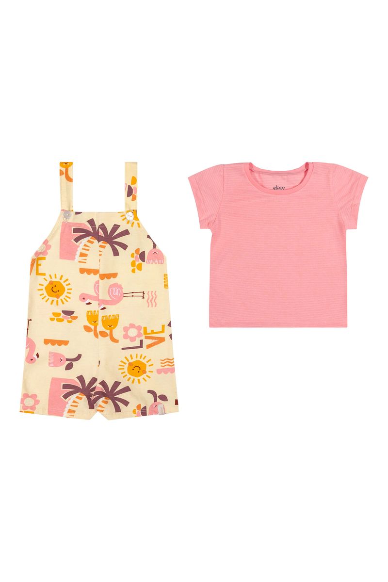 Conjunto Bebê Menina Tropical Com Jardineira Elian Rosa REF: 211632-4446