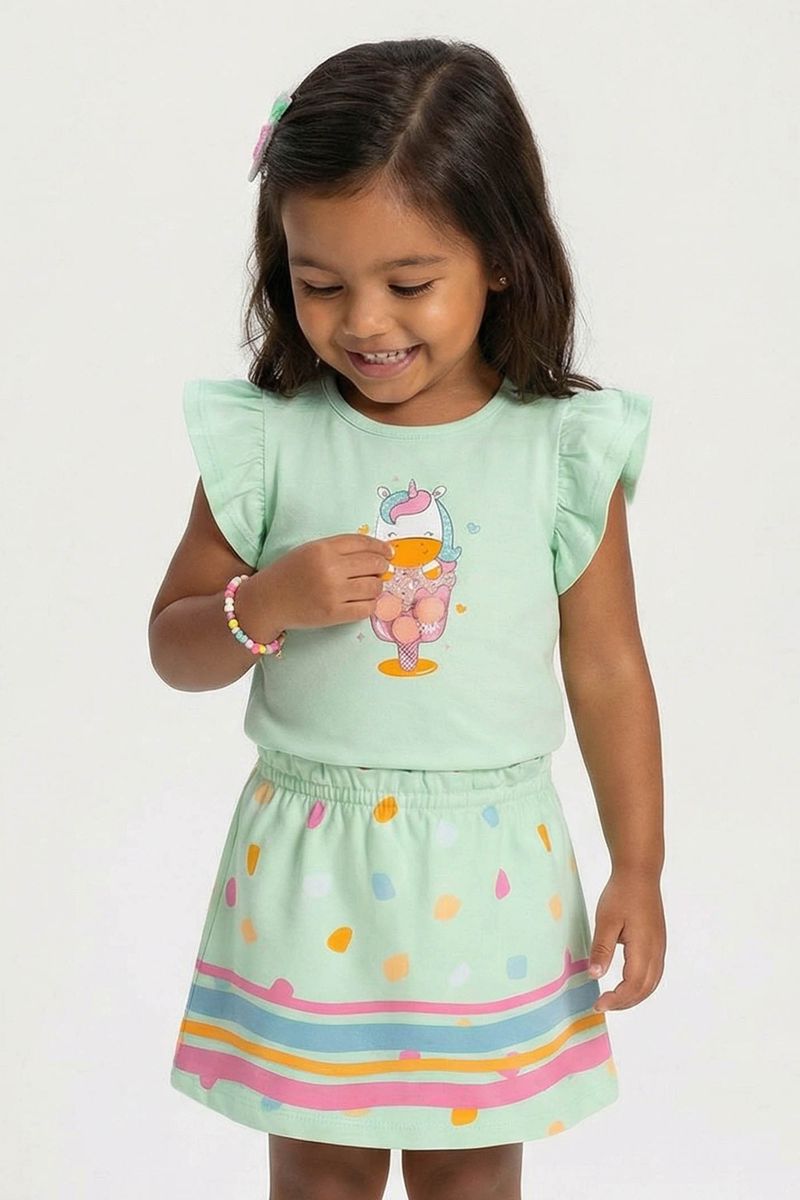 Conjunto Bebê Menina Unicórnio Com Pompom Elian Verde REF: 211640-5127