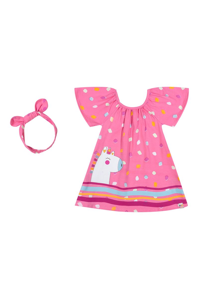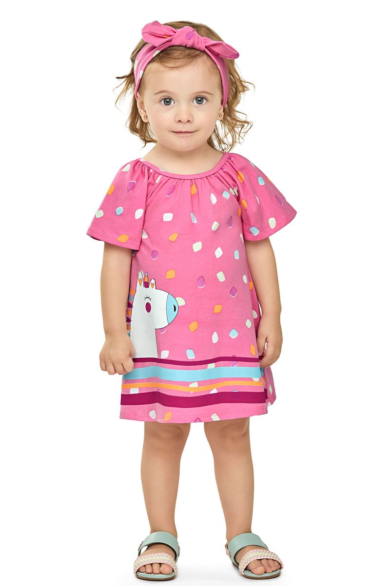 Vestido Bebê Menina Com Faixa Para Cabelo Elian Rosa REF: 211642-4123