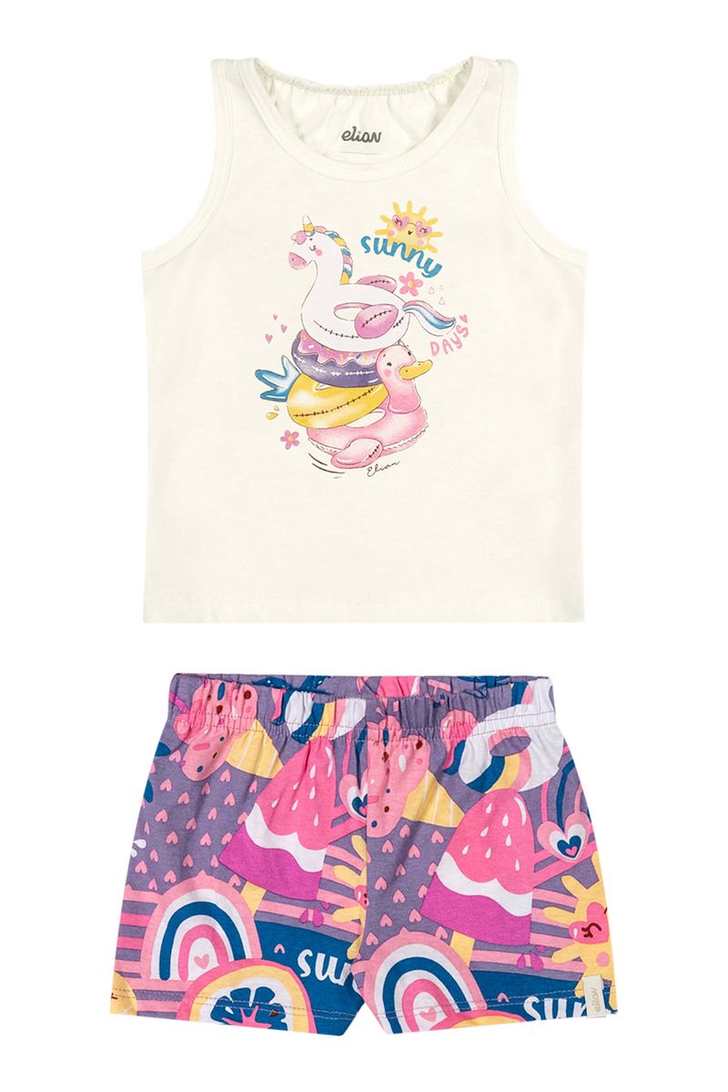 Conjunto Bebê Menina Meia Malha Curto Elian Bege REF: 211643-2037
