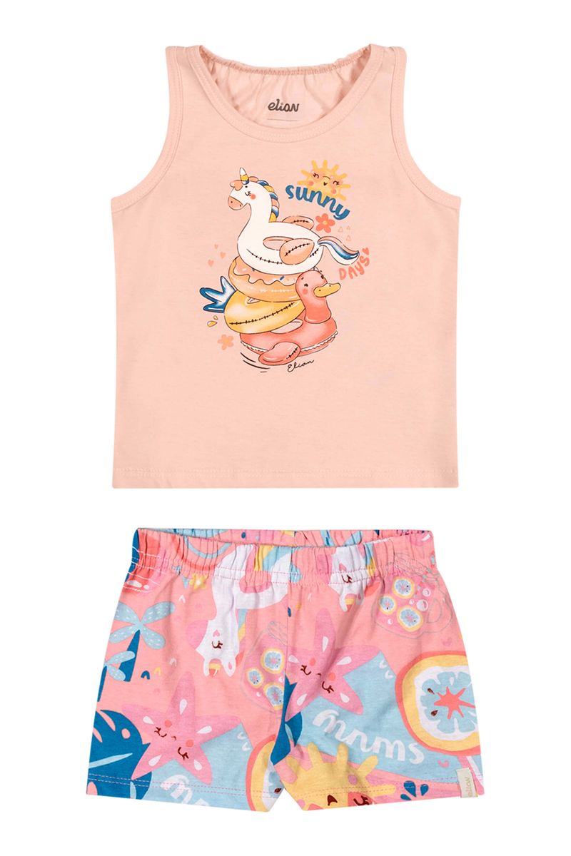 Conjunto Bebê Menina Meia Malha Curto Elian Rosa REF: 211643-4119