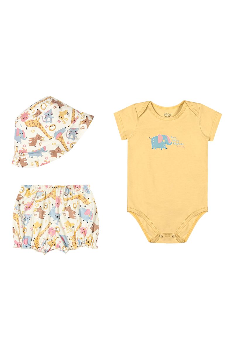 Kit Bebê Menina Com Chapéu Elian Amarelo REF: 211649-3093