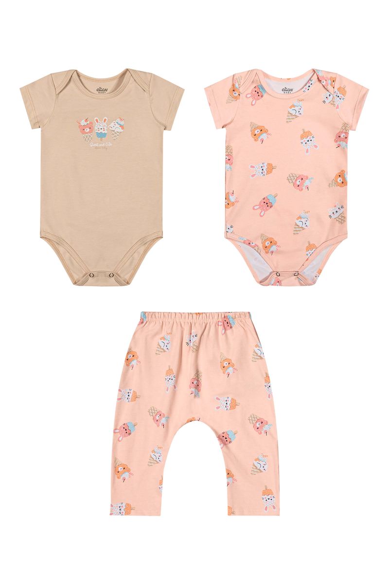 Kit Bebê Menina Com Bodies e Calça Saruel Elian Rosa REF: 211651-2039