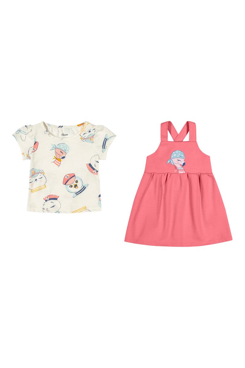 BabyMeninas BabyVestidos Baby MeninasConjunto Bebê Menina Flamingo Curto Elian Bege