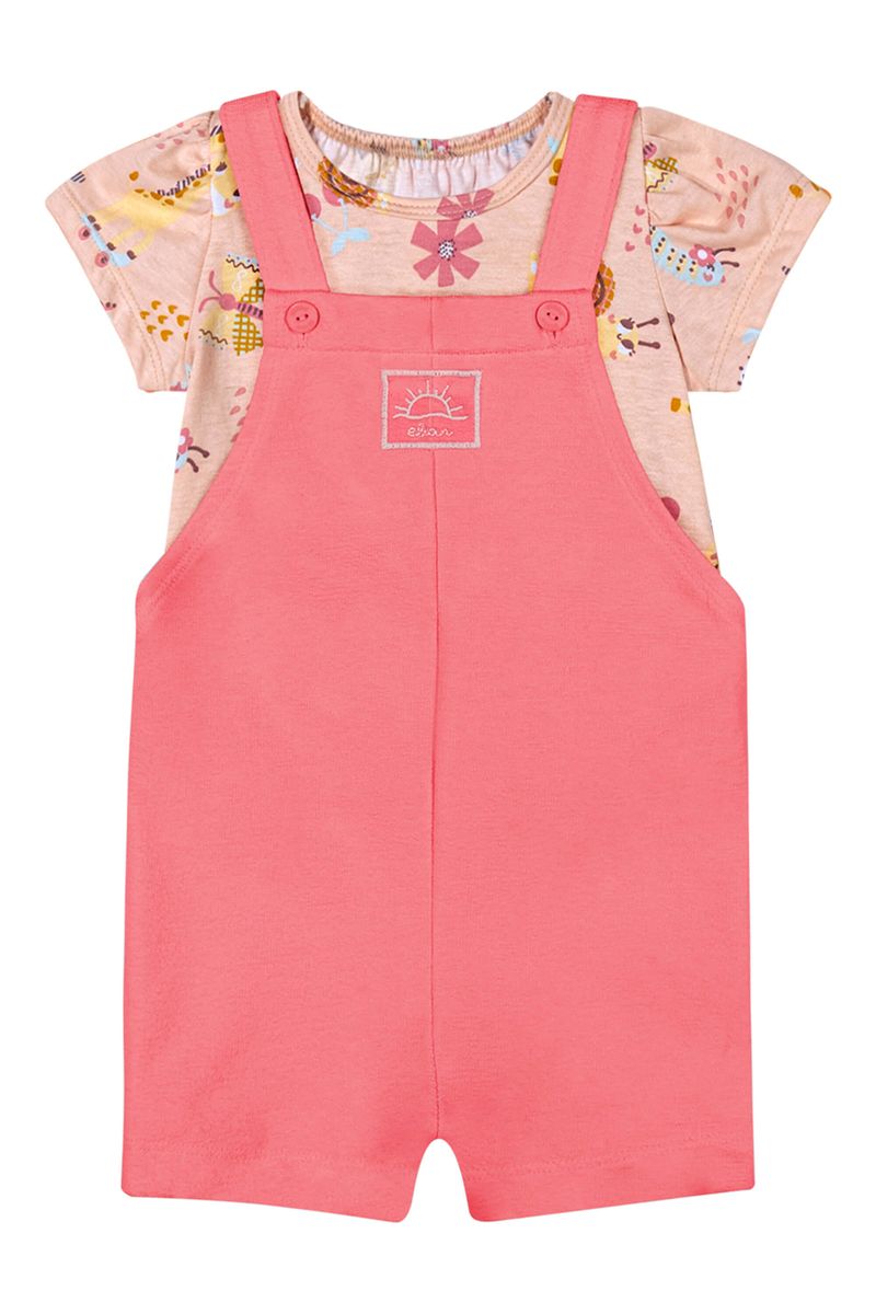 Conjunto Bebê Menina Jardineira Bordada Elian Rosa REF: 211657-4119