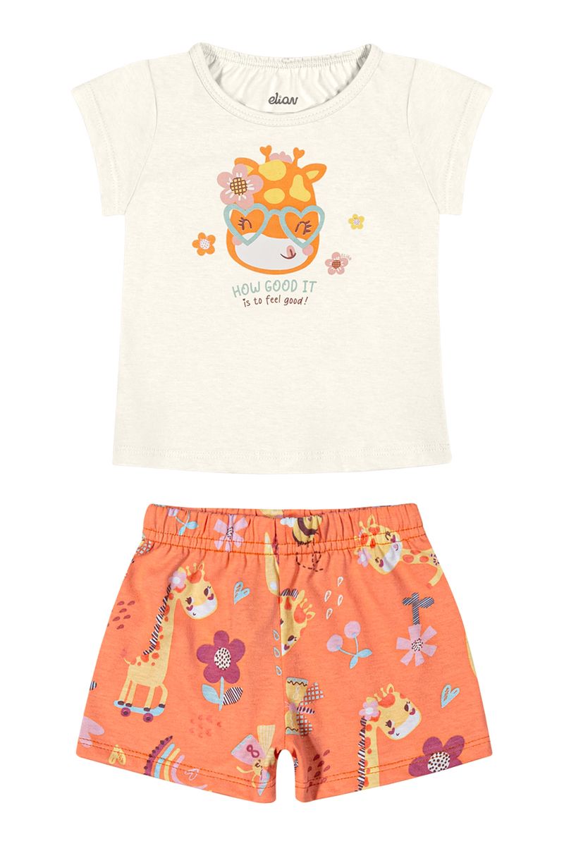 • Conjunto composto por blusa e short • Feito em meia malha • Possui mangas curtas • Possui estampa de girafa • Possui elástico no cós • Ideal para momentos em família